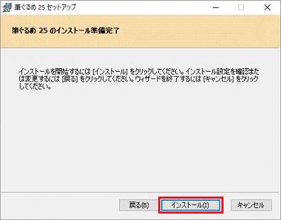 - 「筆ぐるめ xxのインストール準備完了」と表示されます。