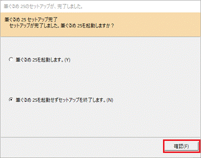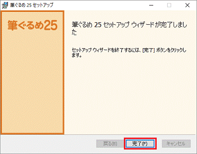 - 「筆ぐるめ xxセットアップ ウィザードが完了しました」と表示されます。