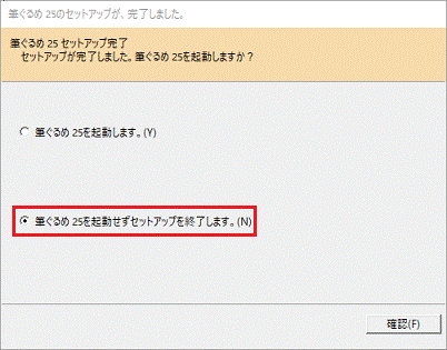 「筆ぐるめ xxを起動せずセットアップを終了します。」をクリックします。