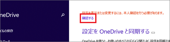 設定項目の上に、「設定を表示または変更するには、本人確認を行う必要があります。」と表示されている場合は、「確認する」をクリックします。