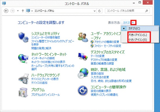- 「表示方法」の「▼」をタップし、「大きいアイコン」または「小さいアイコン」をタップします。