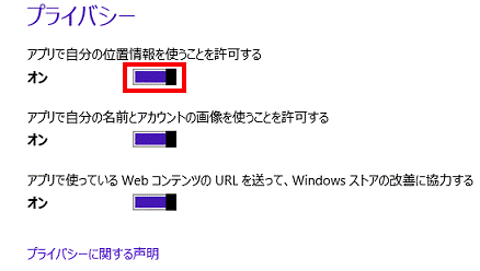 次の手順で、PC設定で位置情報の使用が許可されていることを確認します。