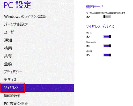 - 「機内モード」が「オフ」であることを確認します。