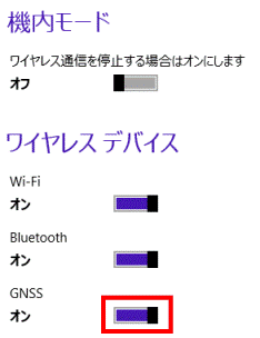 - 「GNSS」が「オン」であることを確認します。