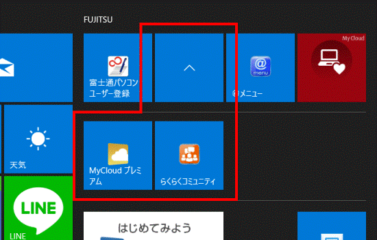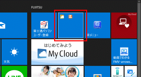 タイルをフォルダーにまとめる方法、まとめたタイルを元に戻す方法は、次の項目をクリックしてご覧ください。