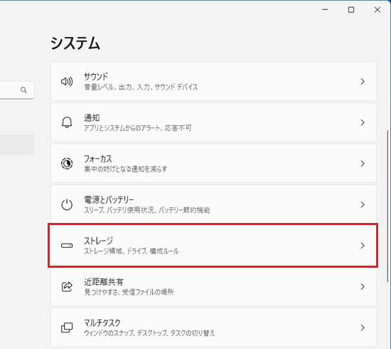 (「ストレージ」が表示されている場合の例) - 「ストレージ」が表示されます。