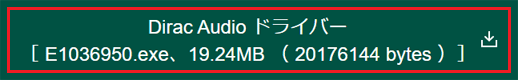- ページをスクロールし、「ダウンロードファイル」の「Dirac Audio ドライバー [ E1036950.exe、19.24MB( 20176144 bytes )]」をクリックします。