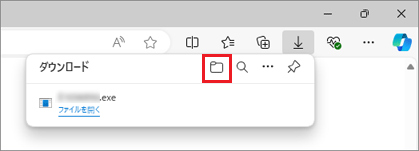 アドバイス- ここまでの手順で「ダウンロード」フォルダーを閉じてしまった場合は、Microsoft Edgeを起動し、右上の「…」(設定など)→「ダウンロード」の順にクリックして表示される、「ダウンロード フォルダーを開く」ボタンをクリックします。