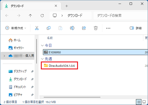 - 「×」ボタンをクリックし、「DiracAudioV24.1.0.6」フォルダーを閉じます。