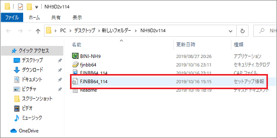 作成されたフォルダーの中に「セットアップ情報」のファイルがある場合の手順