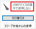 「スリープ状態からの復帰」の「切り替える」ボタンをクリックし、「USBデバイスの操作で復帰しない」に設定します。