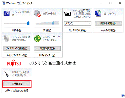 アドバイス「共通で使うモビリティ設定の調整」または「Windows モビリティセンター」がない場合、設定は不要です。
