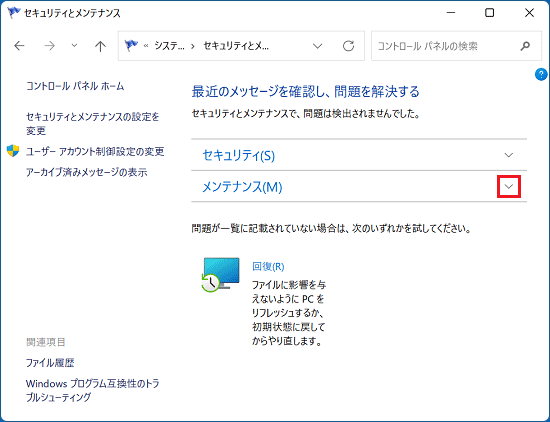 - 「メンテナンス」の右に表示されている「∨」ボタンをクリックします。