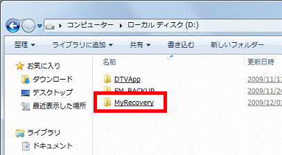 - 「MyRecovery」(または「FM_MYRCV」)フォルダーのフォルダー名や保存場所を変更すると、マイリカバリを起動したときにDドライブのすぐ下に「MyRecovery」(または「FM_MYRCV」)フォルダーが自動的に作成されます。