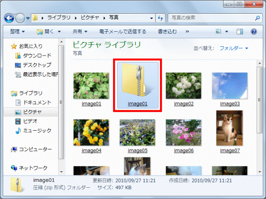 また、展開する時はウイルス対策ソフトを有効にすることをお勧めします。 - 展開する圧縮ファイルが次の状態のときは、空のフォルダーが展開されたり、破損したファイルが展開されたりする場合があります。