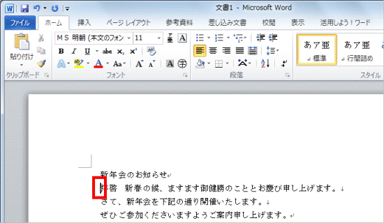 - 改行した行の上や下の間隔が、変更されたことを確認します。