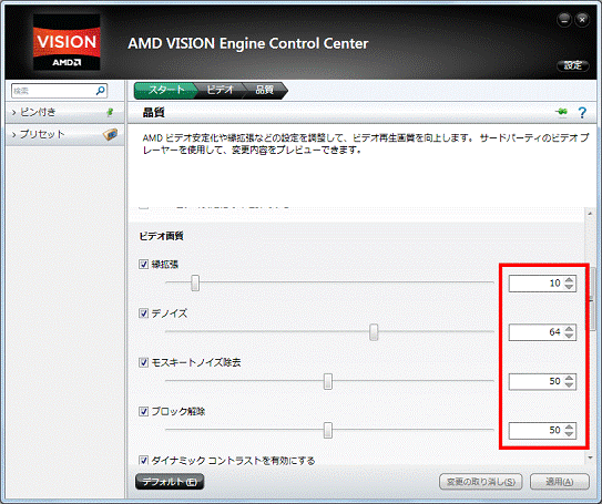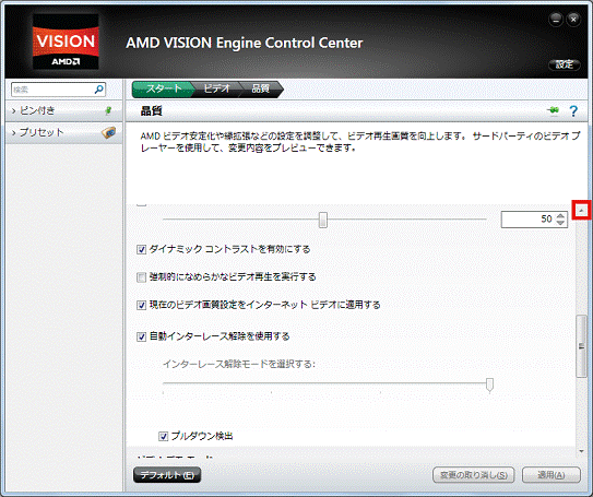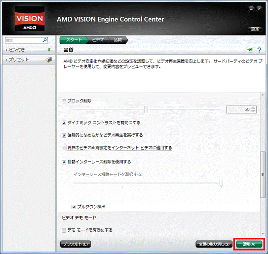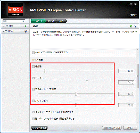 - 「ビデオ画質」欄の、次の項目にチェックがあることを確認します。