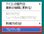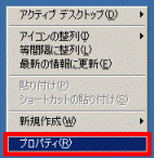 - デスクトップの何もないところで右クリックし、表示されるメニューから、「プロパティ」をクリックします。