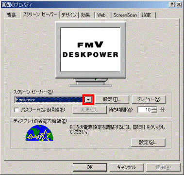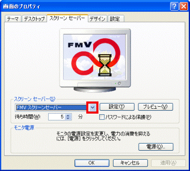 - 「スクリーンセーバー」欄の、「▼」ボタンをクリックします。