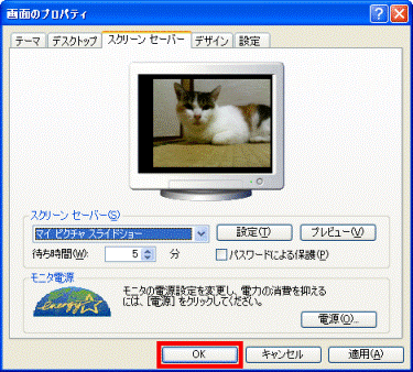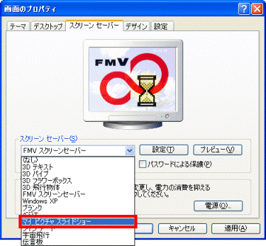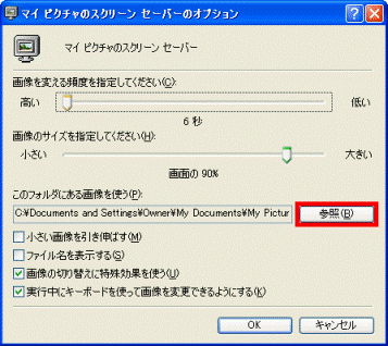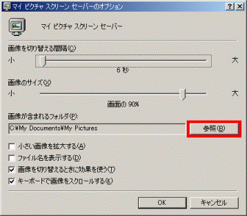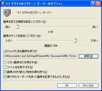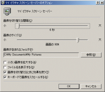 - 「マイピクチャのスクリーンセーバーのオプション」が表示されます。