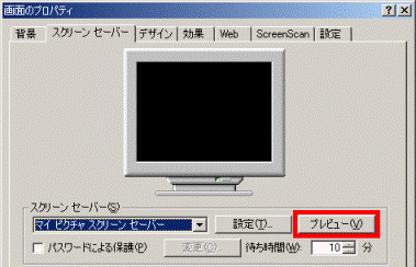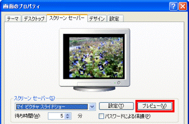「プレビュー」ボタンをクリックすると、スクリーンセーバーの動作を確認できます。