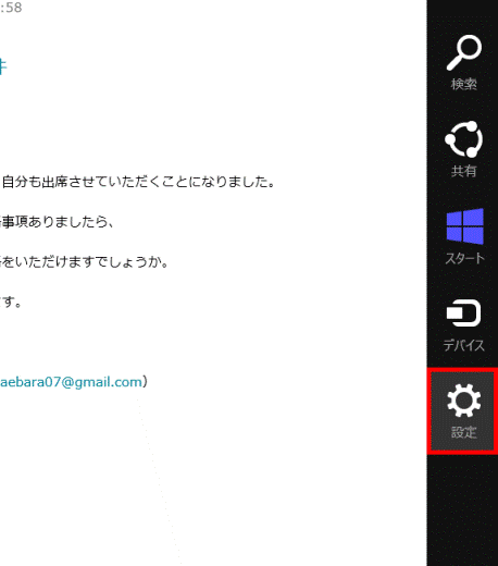 - チャームを表示して「設定」をクリックまたはタップします。