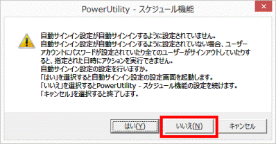 - 「自動サインイン設定が自動サインインするように設定されていません。」と表示された場合は、「いいえ」ボタンをクリックします。