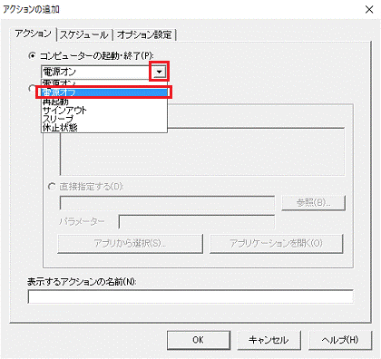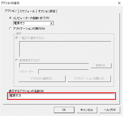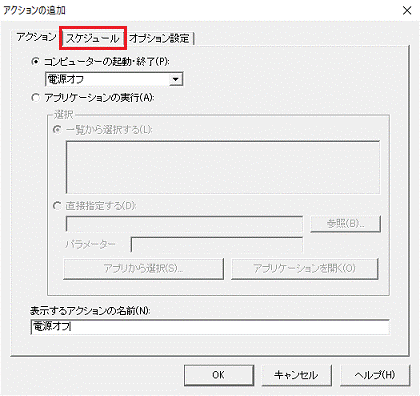 ここでは、例として「電源オフ」のスケジュールを設定します。