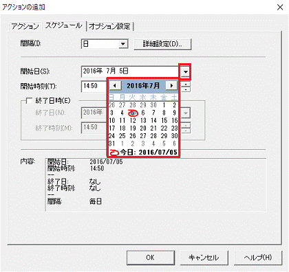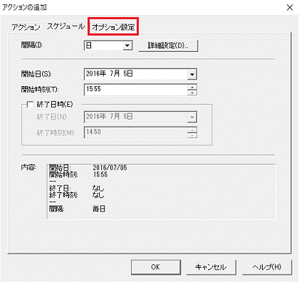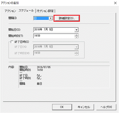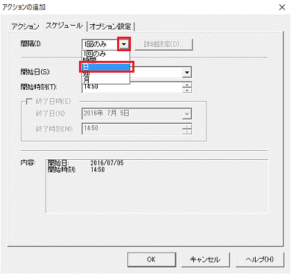 (間隔を「日」にした場合の設定画面) - 「OK」ボタンをクリックします。