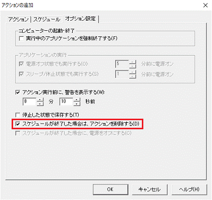 - 必要に応じて「スケジュールが終了した場合は、アクションを削除する」をクリックし、チェックを付けます。