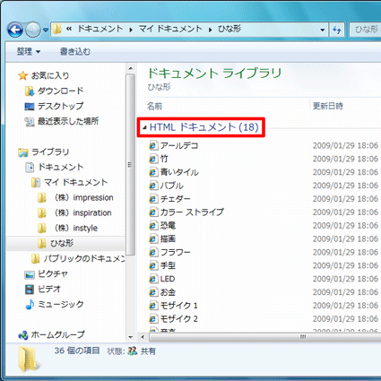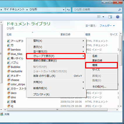 [Windows 7] ウィンドウ内に表示されているファイルを分類して表示する方法を教えてください。