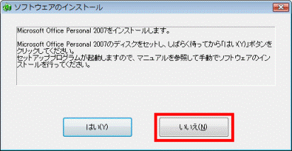 なお、Microsoft Office Personal 2007が添付されていない機種をお使いの場合は、「インストールしない場合」をご覧ください。