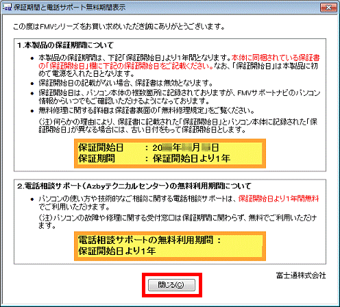 - 「保証期間と電話サポート無料期間表示」が表示されます。