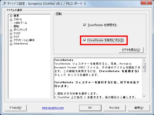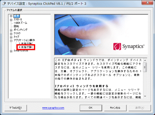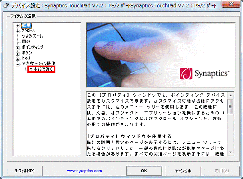 [Synaptics ポインティングデバイス] ジェスチャー機能を設定する方法を教えてください。(2009年冬モデル〜2012年夏モデル)