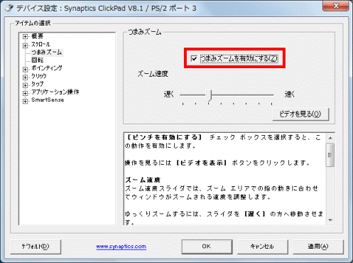 「つまみズームを有効にする」をクリックし、チェックを付けます。