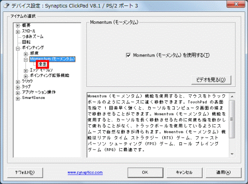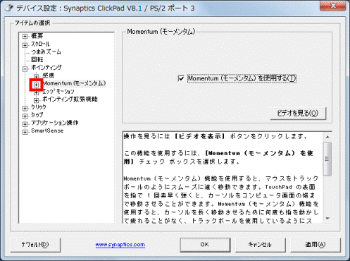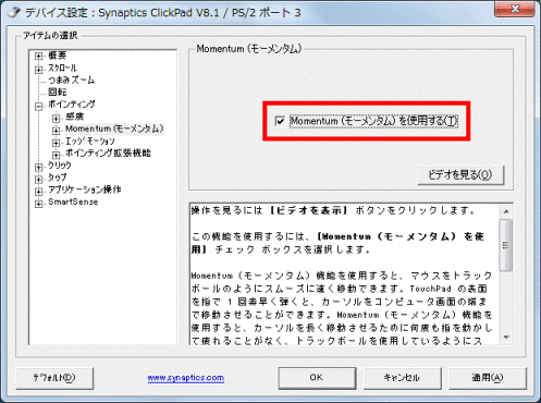 「Momentum(モーメンタム)を使用する」をクリックし、チェックを付けます。