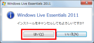 「インストールをキャンセルしてもよろしいですか?」と表示されたら、「はい」ボタンをクリックします。