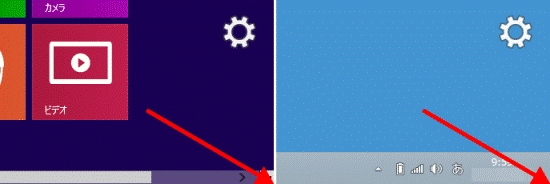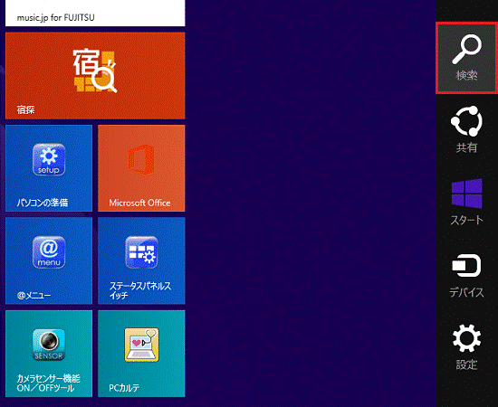 - 【Windows】キーを押すか、画面の右下の角にマウスポインターを移動し、チャームが表示されたら「スタート」をクリックします。