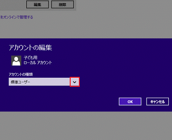 Windows 8をお使いの場合は、アカウントの種類を「標準」に変更します。