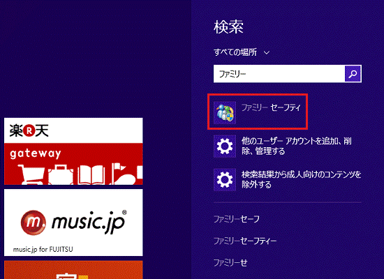 - 検索ボックスの下側、または左側に表示される「ファミリーセーフティ」をクリックします。