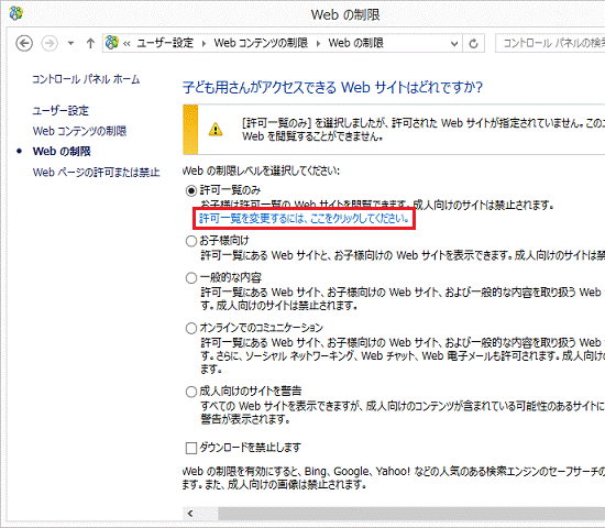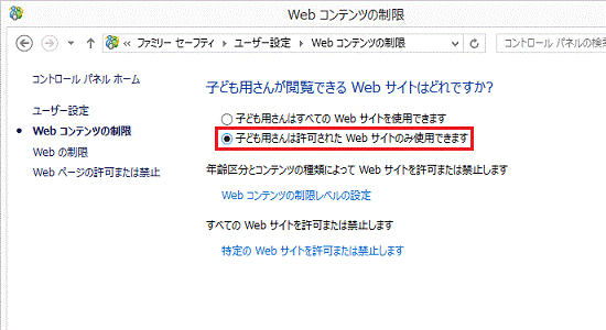 [Windows 8.1/8] 子どもがアクセスできるホームページを制限する方法を教えてください。