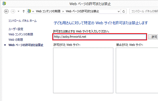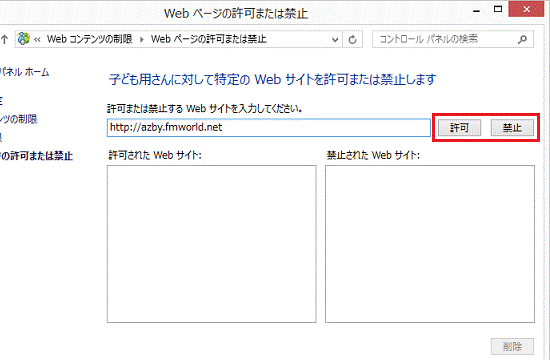 アクセスを許可、または禁止したいホームページのアドレス(URL)を入力します。