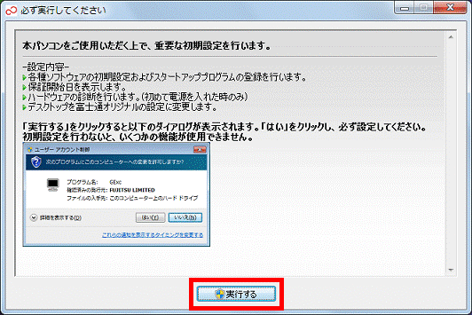 - 「本パソコンをご使用いただく上で、重要な初期設定を行います。」と表示されます。