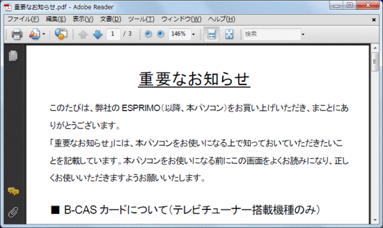 お使いの機種によっては、「Adobe Reader - 使用許諾契約書」が表示されます。
