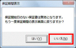 - 「保証開始日のない保証書は無効となります。」と表示されます。
