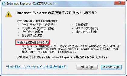 「個人設定を削除する」をクリックし、チェックを付ける、または外します。- 個人設定を削除する場合:チェックを付けます。