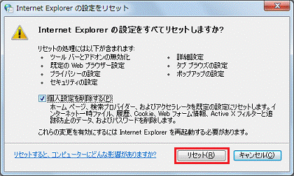 - 「Internet Explorer の設定をリセット」が表示されます。