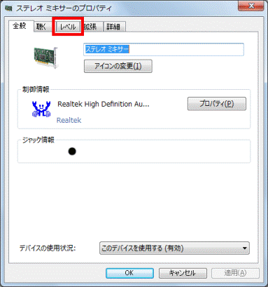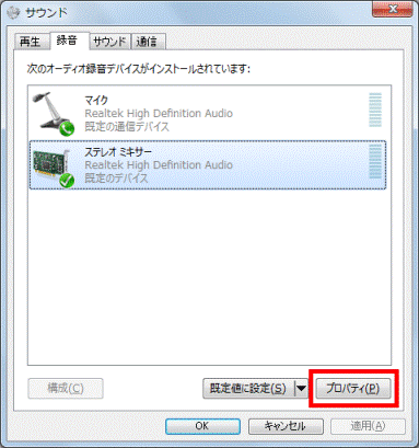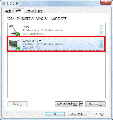 - 「ステレオミキサーのプロパティ」が表示されます。