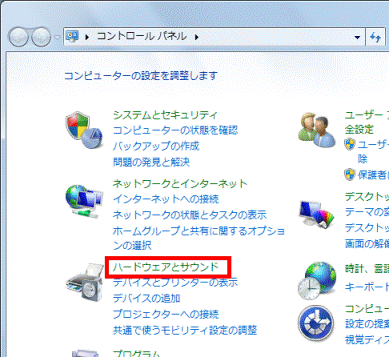 アドバイス表示方法が「大きいアイコン」または「小さいアイコン」の場合は、「サウンド」アイコンをクリックし、手順4.に進みます。