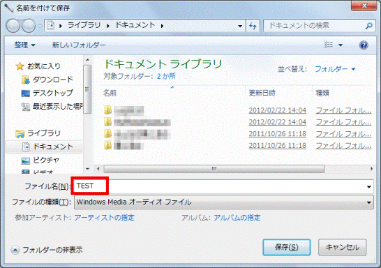 ここでは例として「ライブラリ」の「ドキュメント」をクリックします。